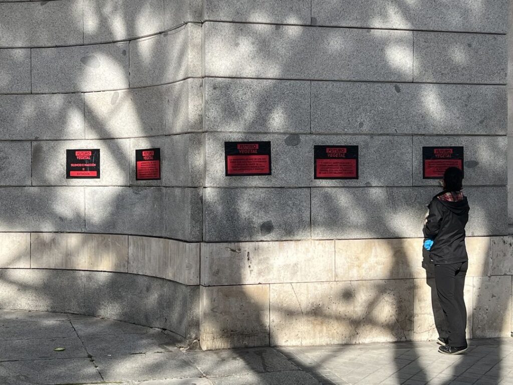 Simultáneamente, pegaron carteles a la fachada con frases como “la ganadería es responsable de más emisiones de gases de efectos invernadero que todo el sector del transporte mundial combinado”, “la ganadería es el mayor usuario de tierras del planeta y el principal impulsor de la deforestación en el mundo”, “un cambio masivo a nivel mundial de los alimentos de origen animal tendría un impacto significativo y casi inmediato a la solución de la Crisis Climática” o “Silencio e Inacción = Extinción”.