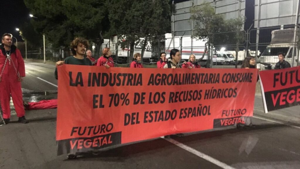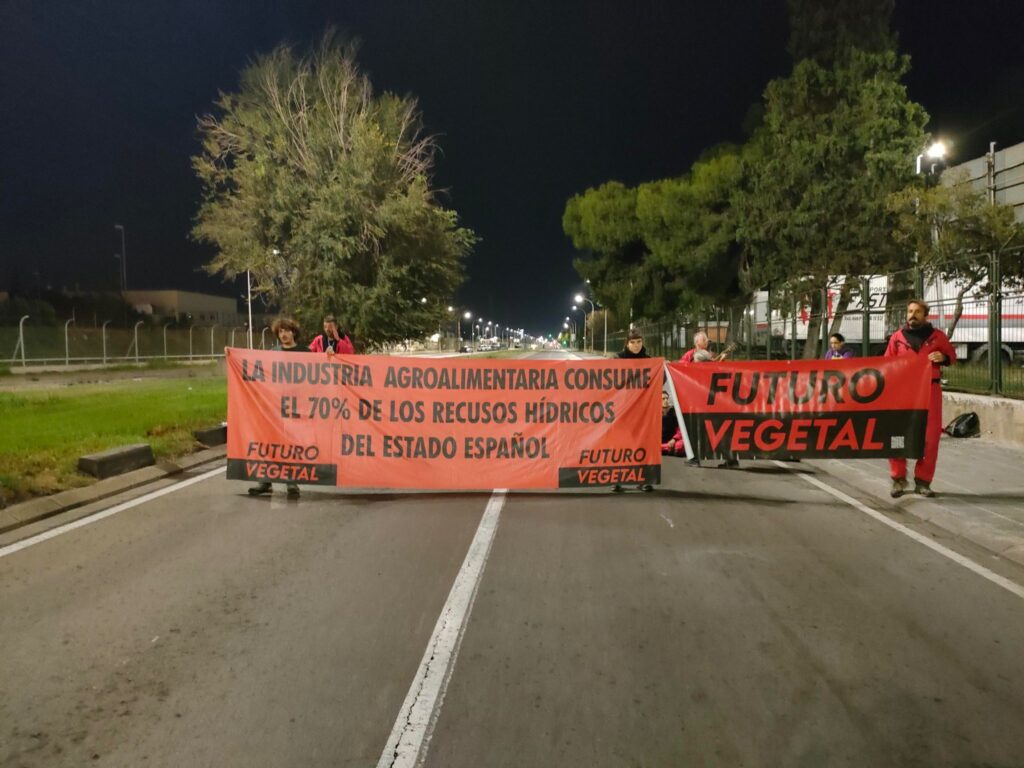 Futuro Vegetal ha bloqueado esta madrugada la entrada a la parte cárnica de Mercabarna en protesta por la promoción, desde las instituciones, del modelo agroalimentario industrial que, afirman, “es incompatible con la transición propuesta por el Panel Intergubernamental de Expertos para el Cambio Climático (IPCC) de la ONU”.