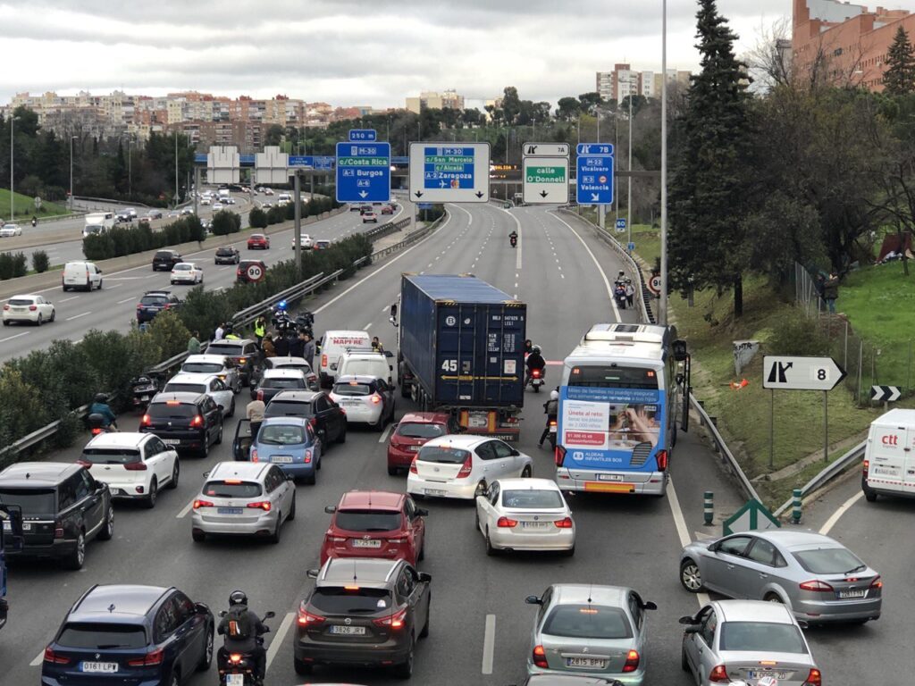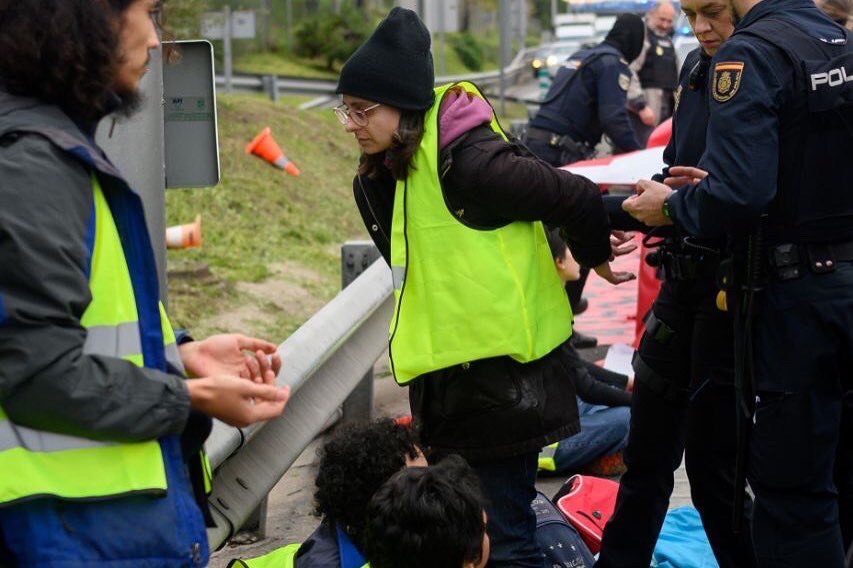 Con pancartas de “Atención obras: estamos construyendo un mundo mejor” y “Disrupción patrocinada por Campofrío”, 10 activistas han invadido los 5 carriles de la M30 y se han pegado al pavimento. El resultado ha sido colas de varios kilometros de retenciones. Esta es una acción dentro de la campaña #joujoujouchallenge a partir del anuncio de Navidad de este año de Campofrío. Este ha supuesto una mofa para los activistas climáticos por su indiferencia y difamación por la preocupación por la Crisis Climática de los jóvenes.