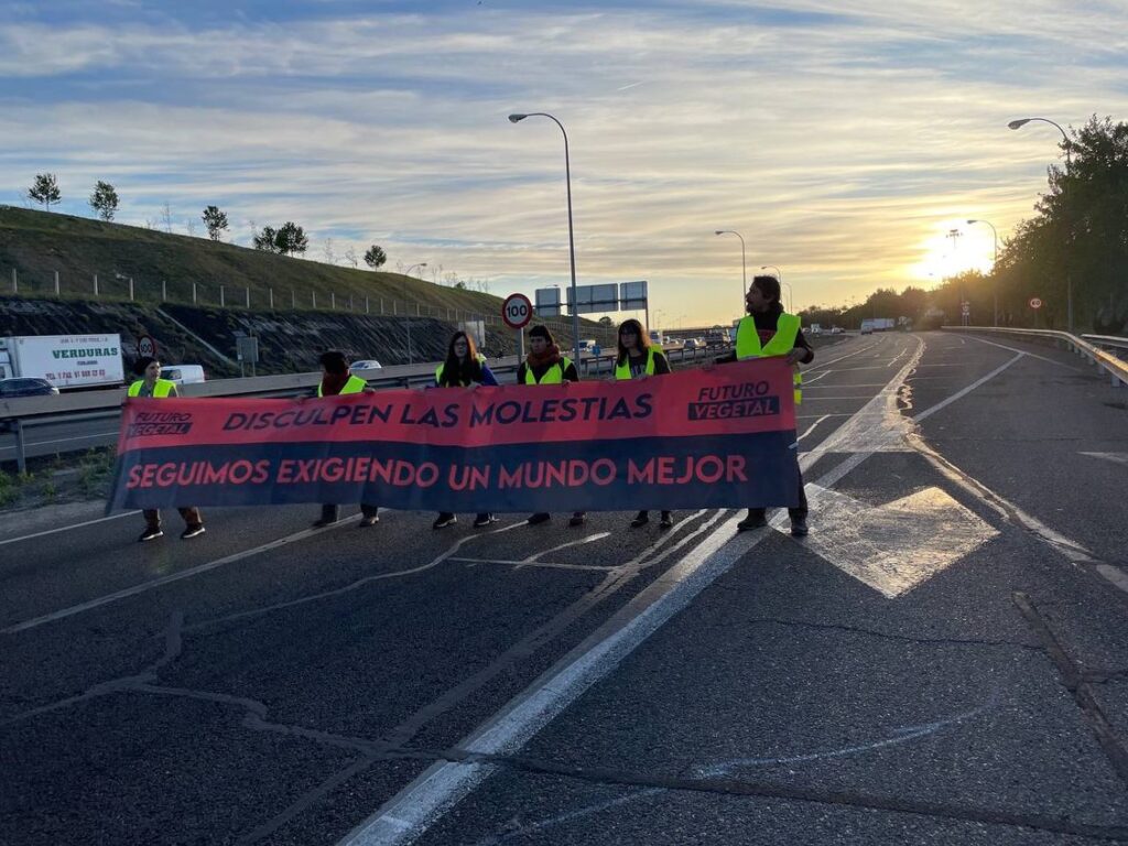 Futuro Vegetal protesta contra el modelo agroalimentario que “es responsable directamente de la emergencia climática actual”, según afirman desde el movimiento haciendo eco de los informes del Panel Intergubernamental de Cambio Climático de las Naciones Unidas. Por ello exigen al gobierno el fin de las subvenciones a la ganadería y que se utilice ese dinero para una transición a un sistema agroalimentario basado en plantas que sea social y ecológicamente justo.
